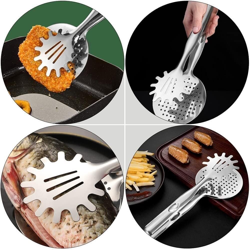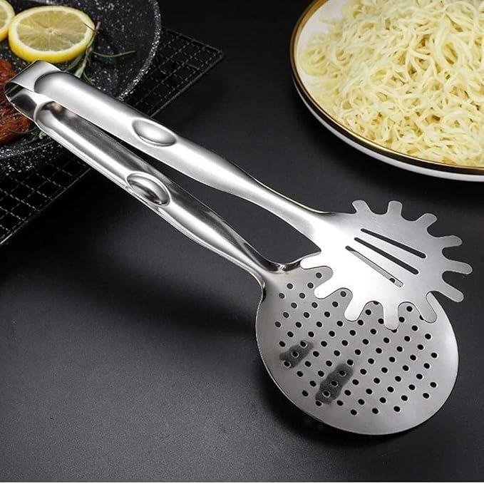 With long handles and a wide opening, these tongs provide a secure and confident grip, making it easy to flip meat, serve pasta, toss salads or move vegetables with precision. Their heat-resistant construction protects your hands from burns, while the ergonomic design reduces hand strain and ensures comfortable, efficient handling.